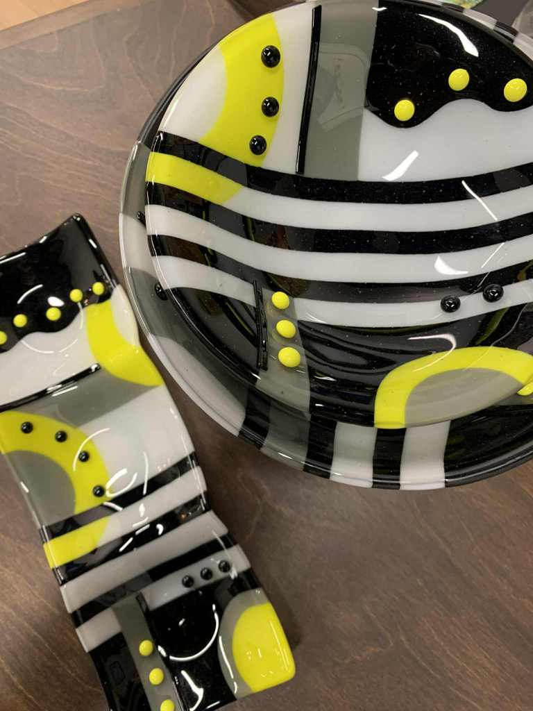 FRANÇOISE TREMBLAY, artiste du verre: vitrail, verre fusion et thermoformage. Elle offre une variété d’objets d’écoratifs d’art et de service . .