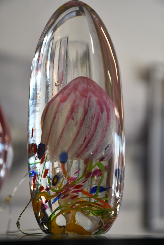 Face à un fjord majestueux, Giuseppe Benedetto, Italien d’origine mais profondément enraciné au Québec, pratique son art depuis 40 ans. Toujours en quête de nouvelles formes, ce sculpteur verrier crée une grande variété de pièces en explorant différentes techniques de manipulation, de coloration et de cuisson.