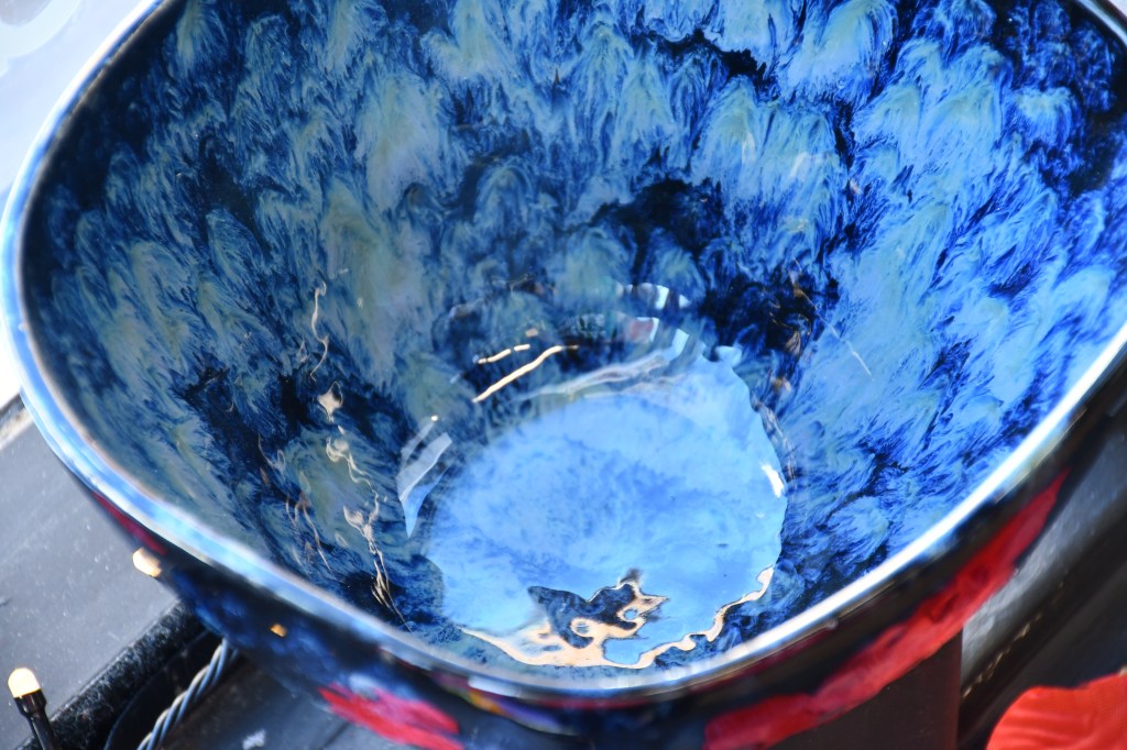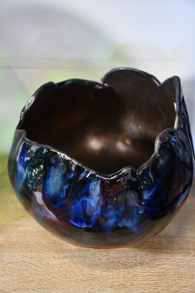 Elle décrit et raconte, en pigments et en formes, des passions et des émotions. Un ciel, un tronc d’arbre, une fleur : chacun possède sa propre personnalité et nous transporte dans une atmosphère qui se traduit en émotions. Elle apprécie la fluidité et la transparence, mais elle célèbre surtout la profondeur et la richesse des valeurs soutenues. C’est cela qu’elle souhaite partager avec vous… Elle espère que, pour chacun, ses céramiques s’animeront comme le font ses aquarelles.